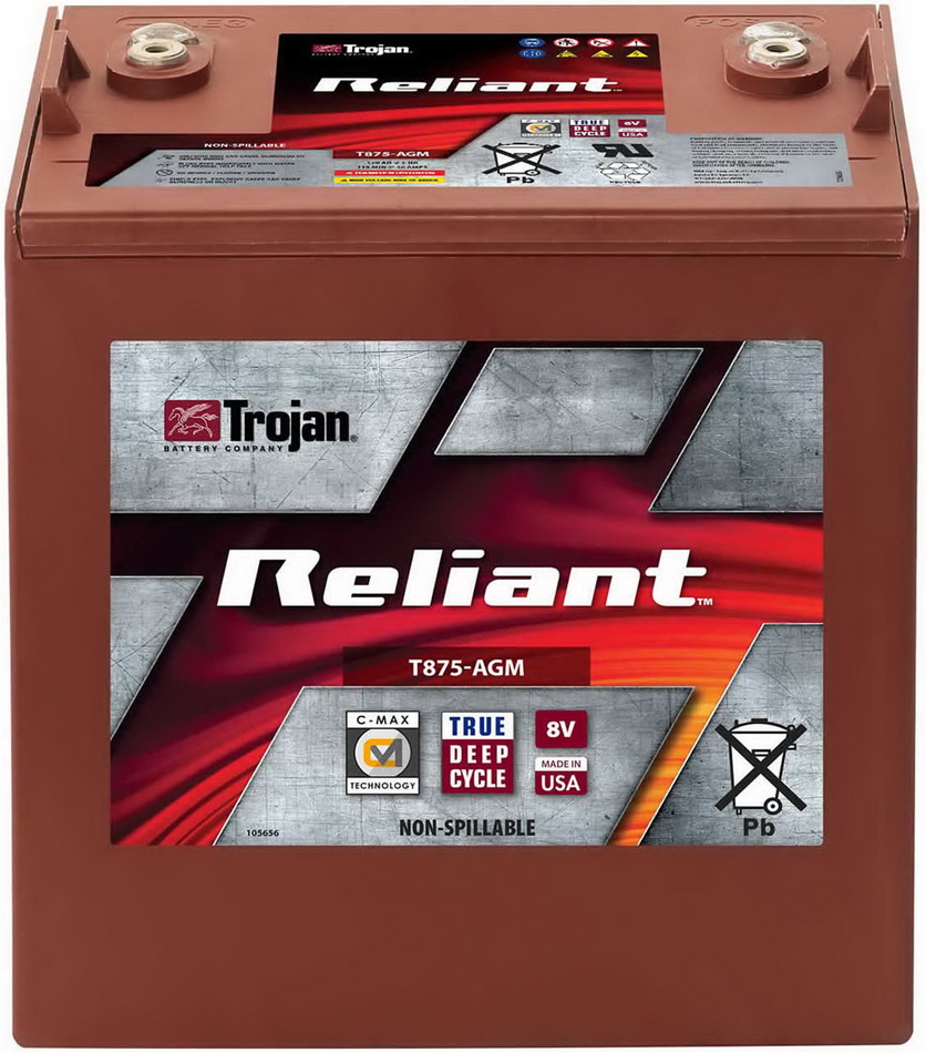 Reliant ™ AGM изготавливается в США на новом заводе Trojan в г. Сандерсвиль, штат Джорджия. Новая линейка батарей предназначена для работы на строительных ножничных подъемниках и платформах, поломоечных машинах, гольфкарах, в составе возобновляемых источников энергии и пр.